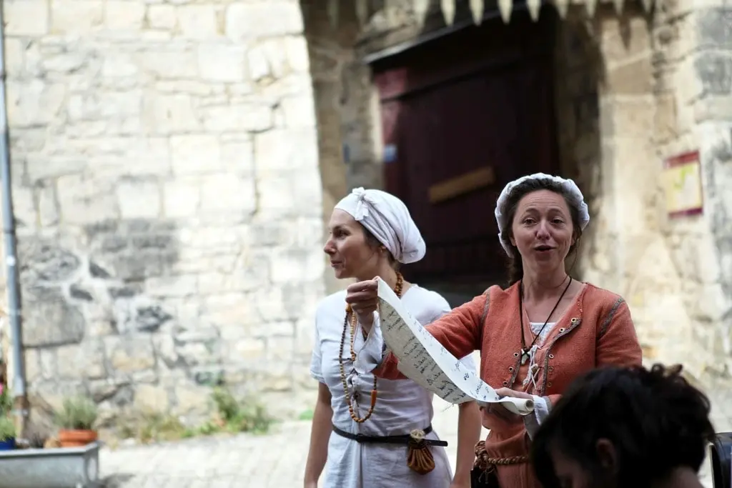 Rendez-vous au Moyen-âge pour suivre deux villageois.e dans un parcours qui vous en mettra plein la vue, l'ouïe, l'odorat et même peut-être vous donnera le goût de la vie populaire au cœur de la cité médiévale !